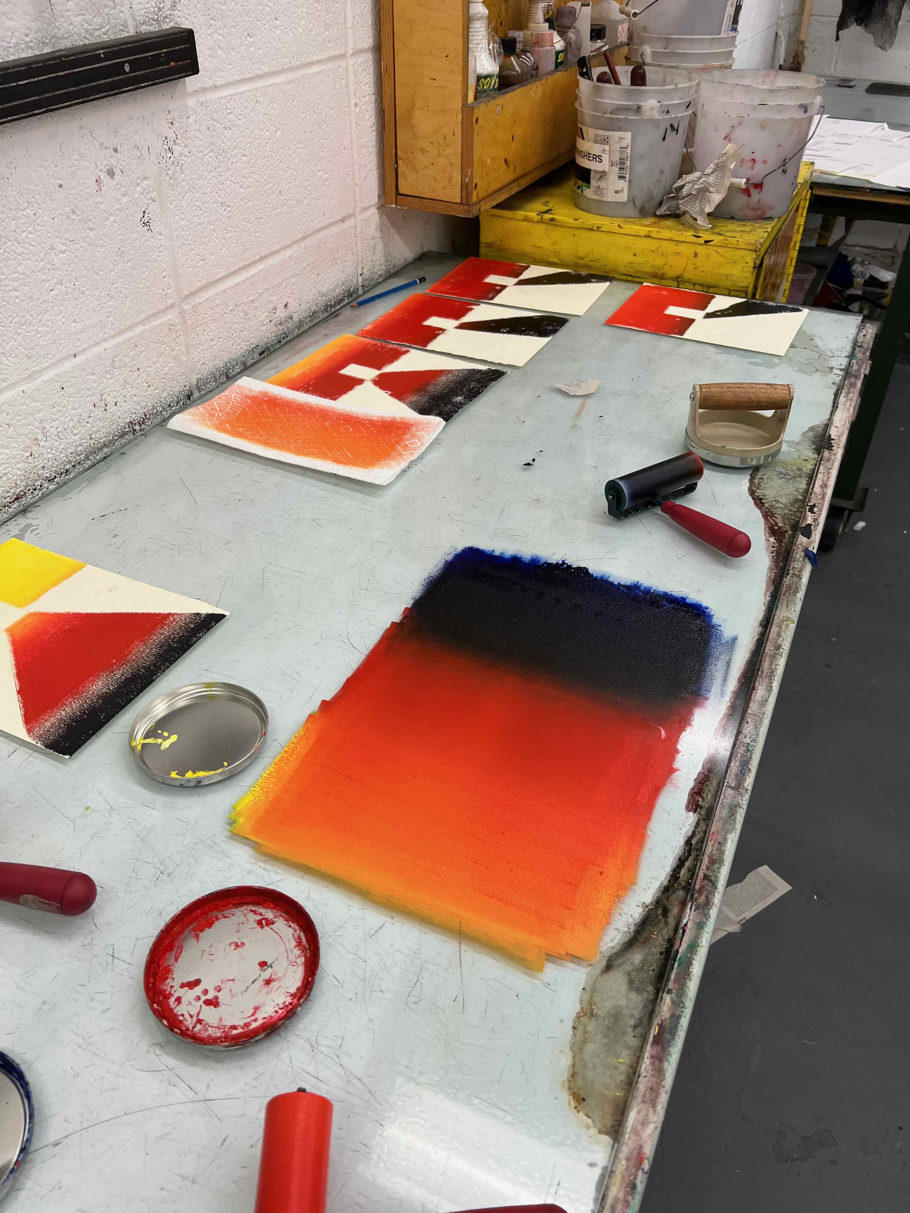 These are all monoprints with oil-based relief printing ink and a brayer roller